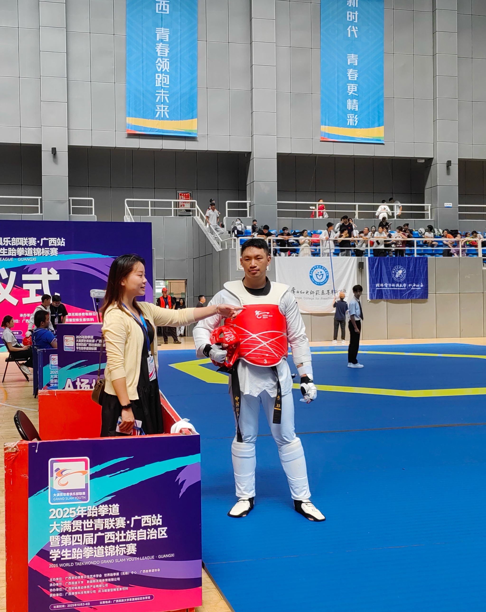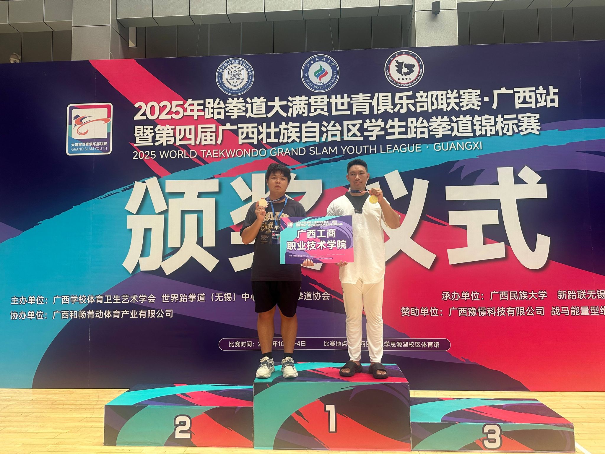 2025年10月3日至4日,在广西民族大学(思源湖校区)举办的跆拳道大满贯世青联赛(广西站)暨第四届广西学生跆拳道锦标赛中,我校代表队斩获金、银双牌及团体三等奖。