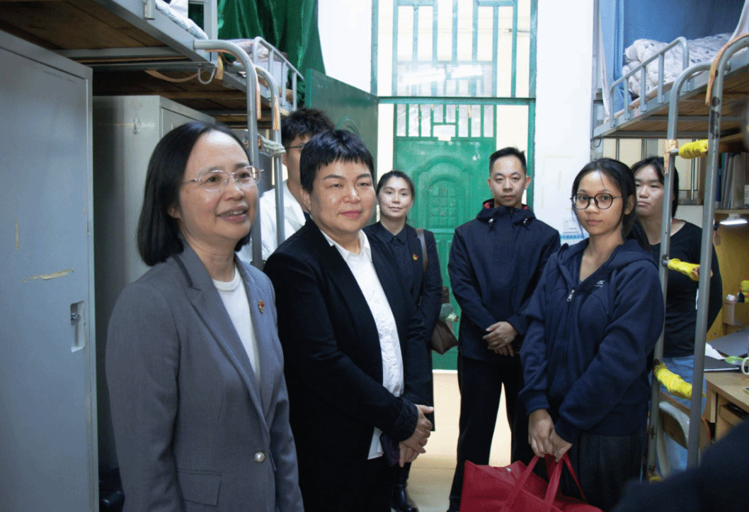 为全面落实立德树人根本任务,扎实推进领导干部深入基层联系hth网页版在线登录入口王者,2025年11月26日下午,学校党委副书记、纪委书记韦云凤来到中尧校区,深入“一站式”学生社区,走访学生宿舍,与同学们进行了面对面的交流与慰问。党委hth网页版在线登录入口王者部、会计学院相关负责人一同参加活动。