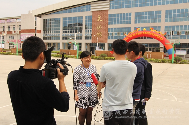 4月25日,2015年广西职业院校技能大赛高职组“市场营销技能”比赛在华体汇app官方网站文体馆隆重举行,当天有十家媒体单位的记者十余人前来我院采访报道赛事情况,他们分别为来自“中央广播电台央广之声”、“人民网”、“新华网”、“中新网”、“广西新闻网”、“当代生活报”、“南宁晚报”、“广西电台私家车930”、“南宁电台”、“南宁电视台新闻夜班栏目组”的记者朋友们。