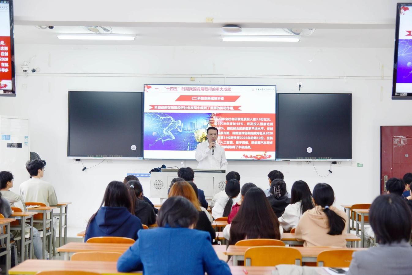 为深入学习贯彻党的二十届四中全会精神,提升思政课育人实效,2025年11月7日上午,学校副校长郑华以《深悟党的二十届四中全会精神实质 担当“十五五”奋进新使命》为主题,为视觉2402班同学讲授思政专题课。马克...